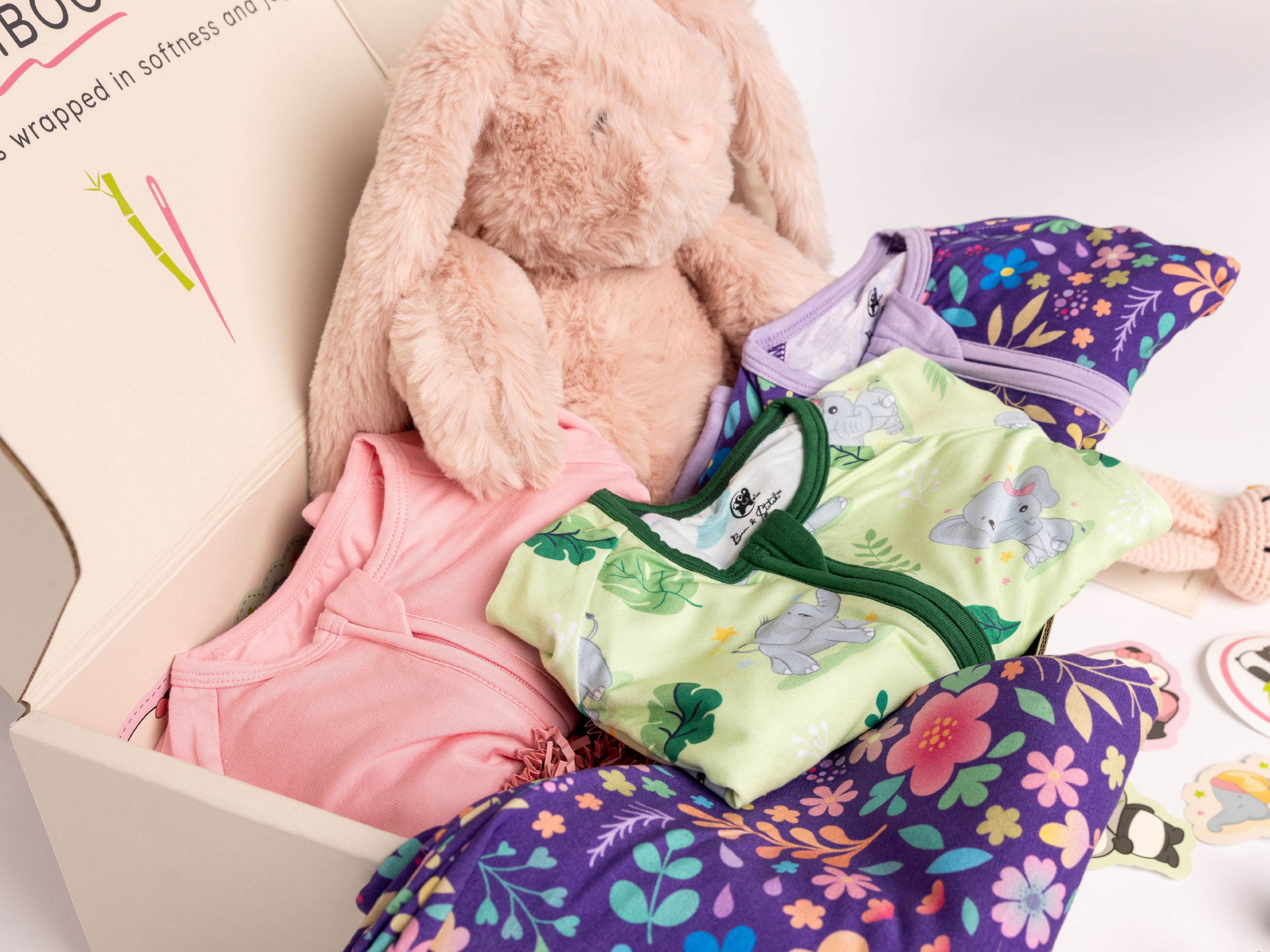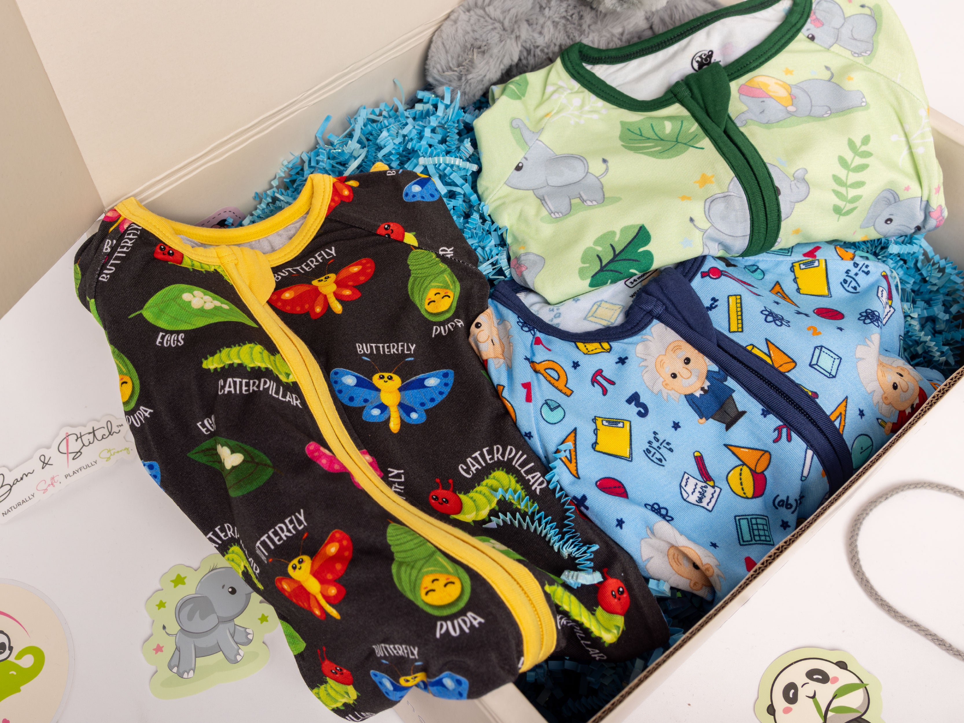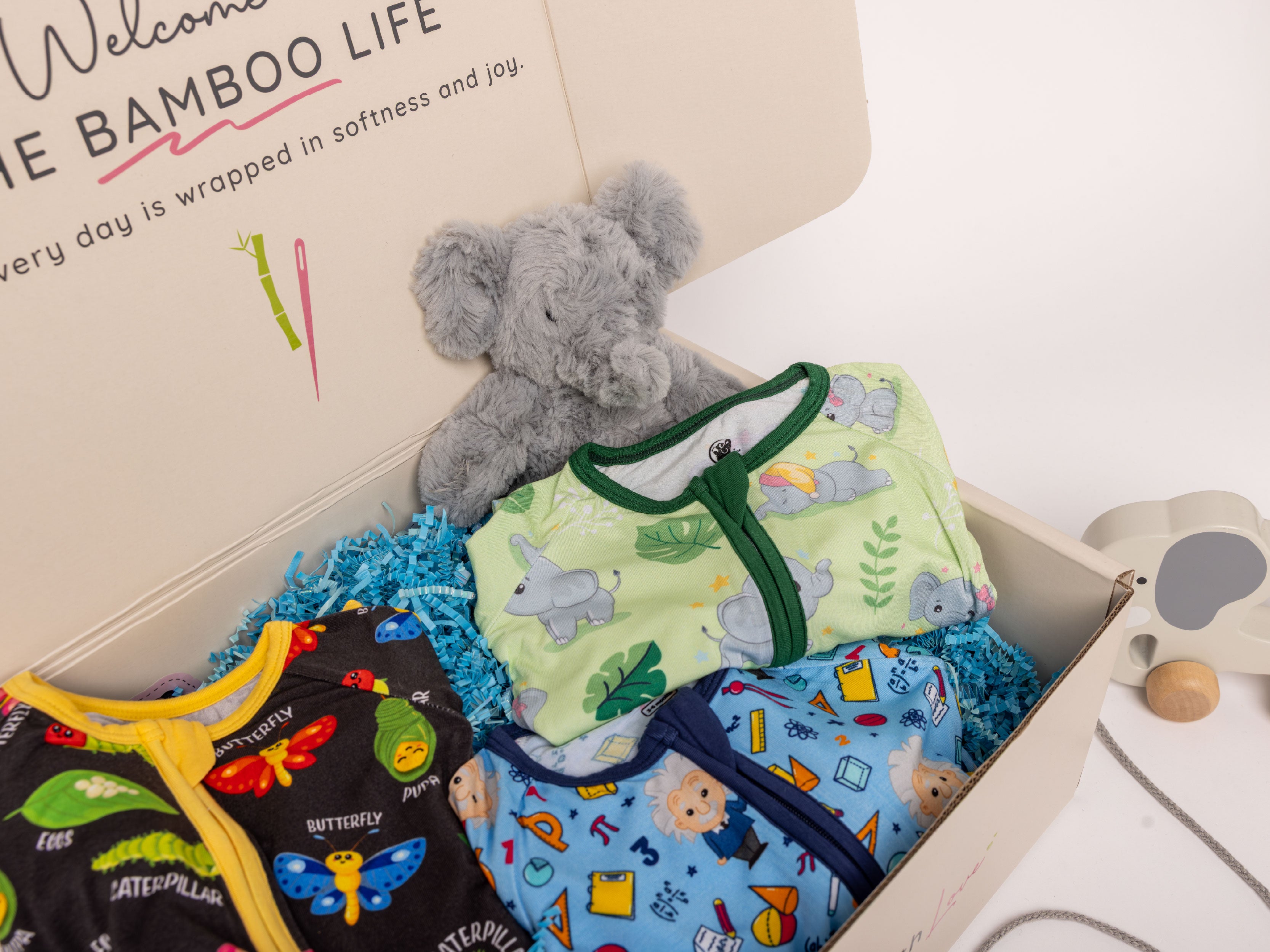The Swaddle Box includes three of our premium bamboo swaddles, perfect for soothing, cuddling, and everyday use. This gift set is extra special, as the swaddles may feature limited edition designs, beloved signature prints, or even unreleased patterns available only through this box.